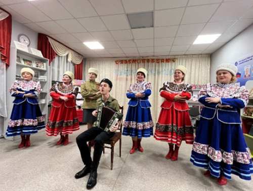 Библиотекари рассказали об истории создания таких песен, как «В землянке», «Катюша», «На безымянной высоте», «Давным-давно была война» и других. Зрители смотрели видеоролики с документальными кадрами кинохроники военных лет и дружно подпевали.