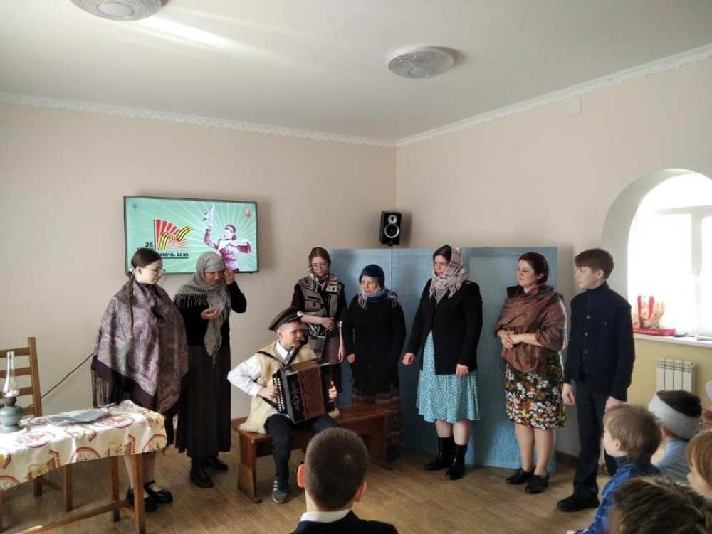 4 мая, в воскресной школе при церкви в честь иконы Божией Матери «В скорбех и печалех Утешение»в городе Слободском, сотрудники Слободской городской библиотеки имени Александра Грина совместно с воспитанниками и сотрудниками воскресной школы показали интерактивно-патриотическую театрализованную постановку «Была война... Была Победа...».